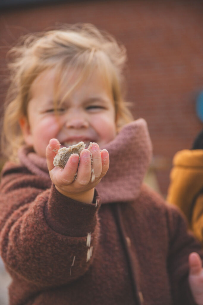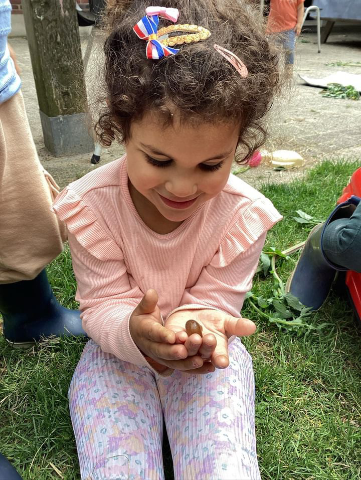 Tussen 7.30 uur (vervroegde opvang vanaf 7.00 uur) en 9.00 uur kunnen kinderen gebracht worden. Doorgaans gaan we in de ochtend en in de middag buitenspelen, ook met minder mooi weer. Ze kunnen dan in de uitdagende buitenruimte spelen, met een medewerker de moestuin in gaan of naar de dierenweide gaan. ’s morgens en ’s middags wordt er fruit/groente gegeten als tussendoortje en ’s middags krijgen kinderen vaak ook nog een zuiveltussendoortje.
